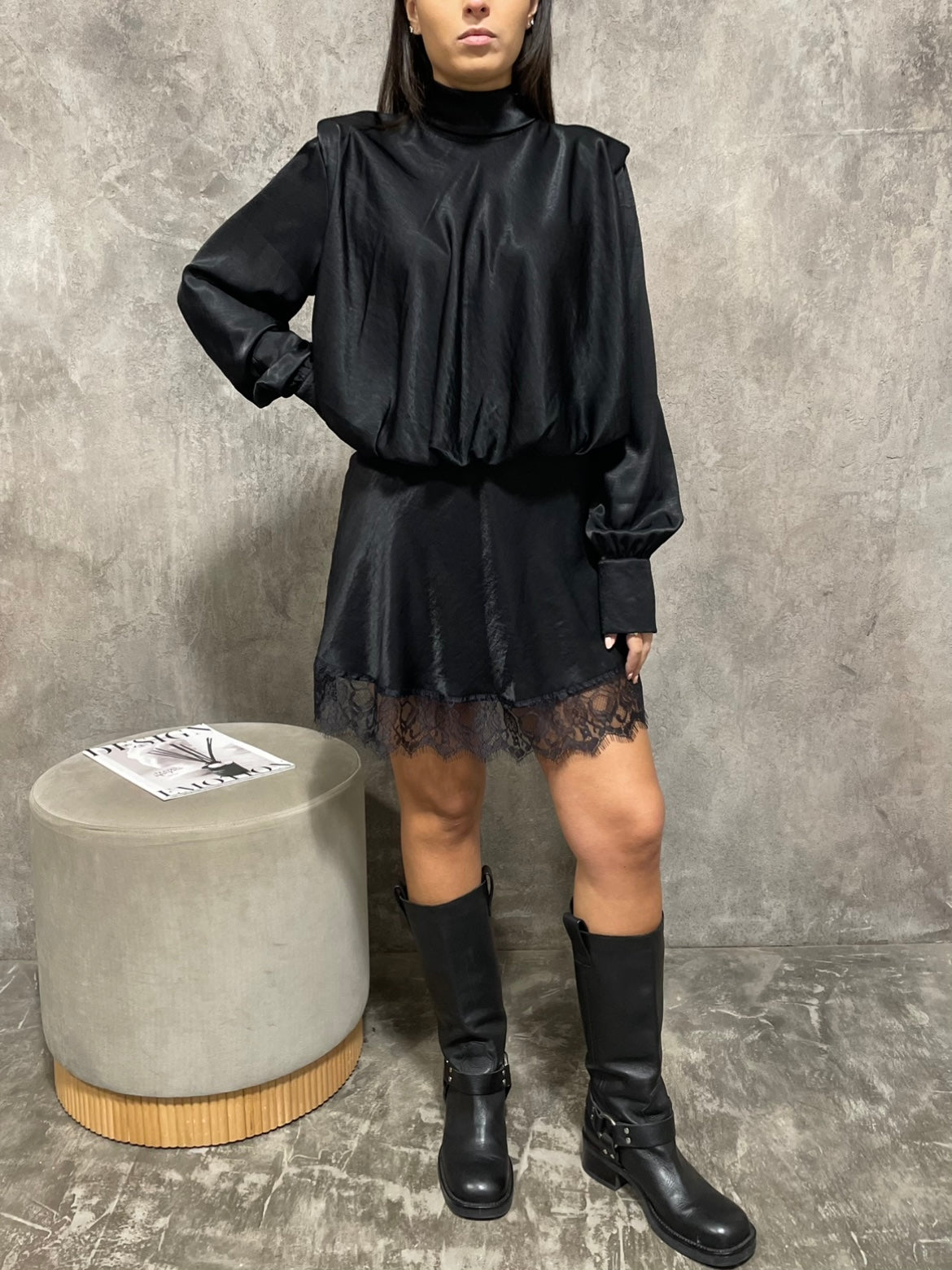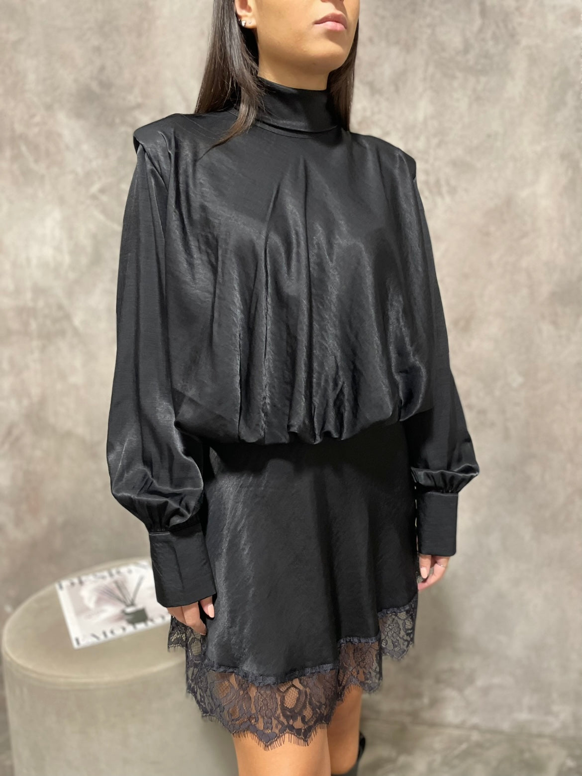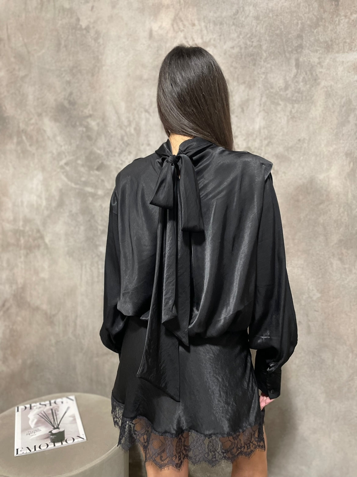 Abito foderato in misto viscosa, con spalline imbottite e fiocco sul retro.