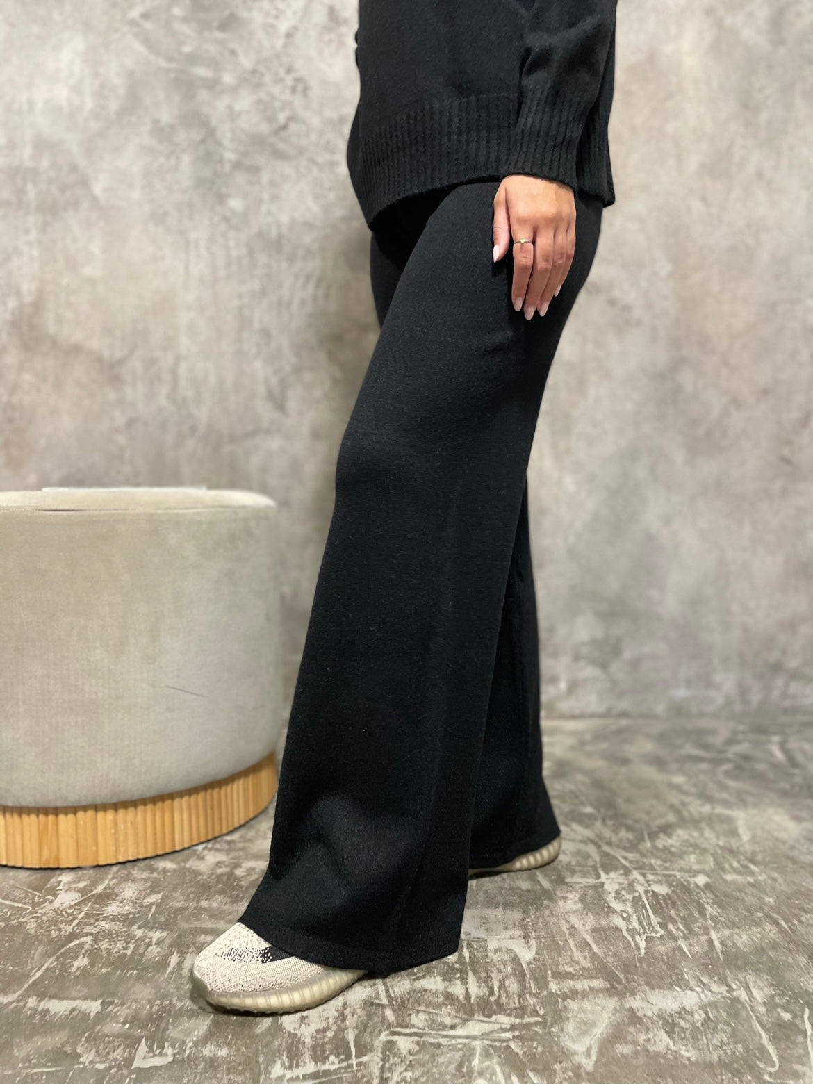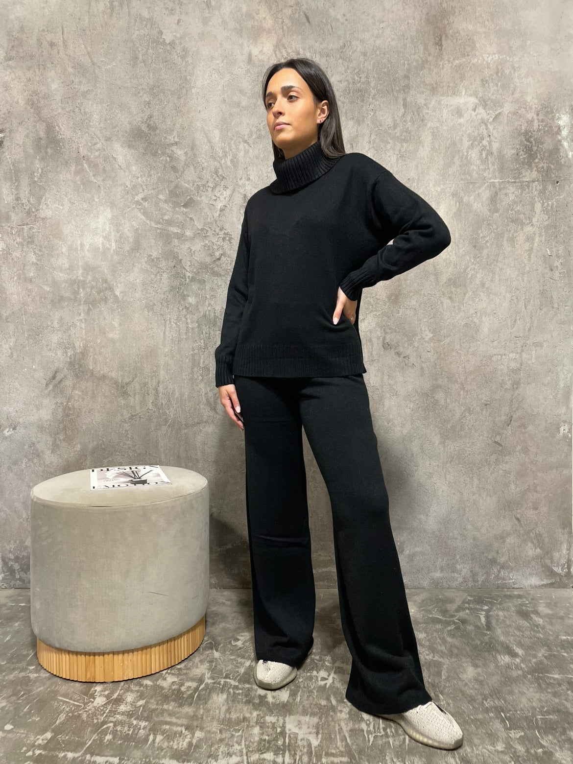 Completo maglione a collo alto più pantalone in misto viscosa.