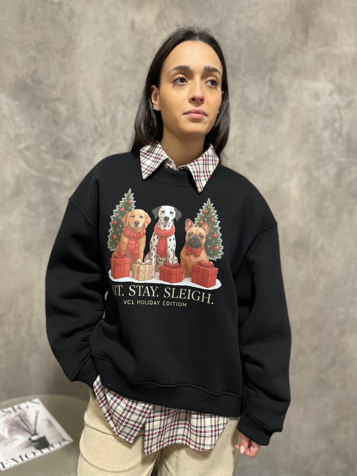 Felpa girocollo modello over con stampa frontale Natalizia.