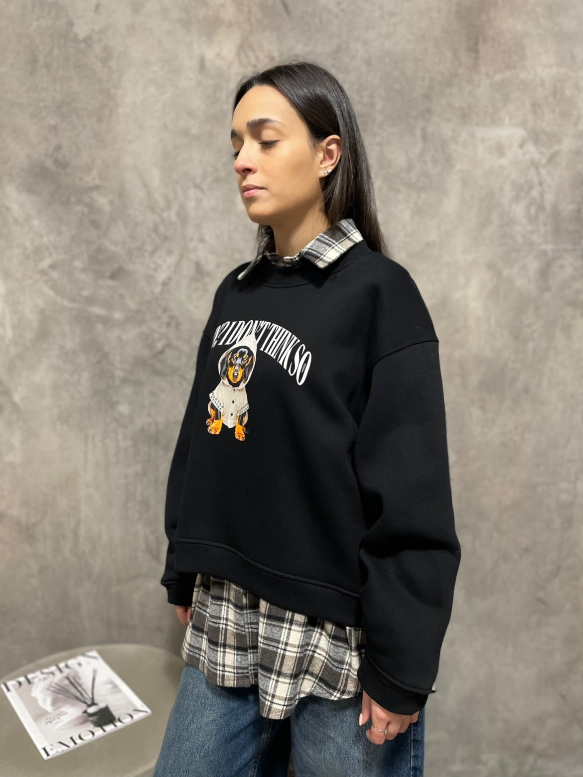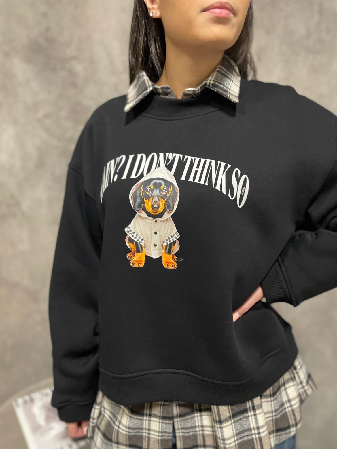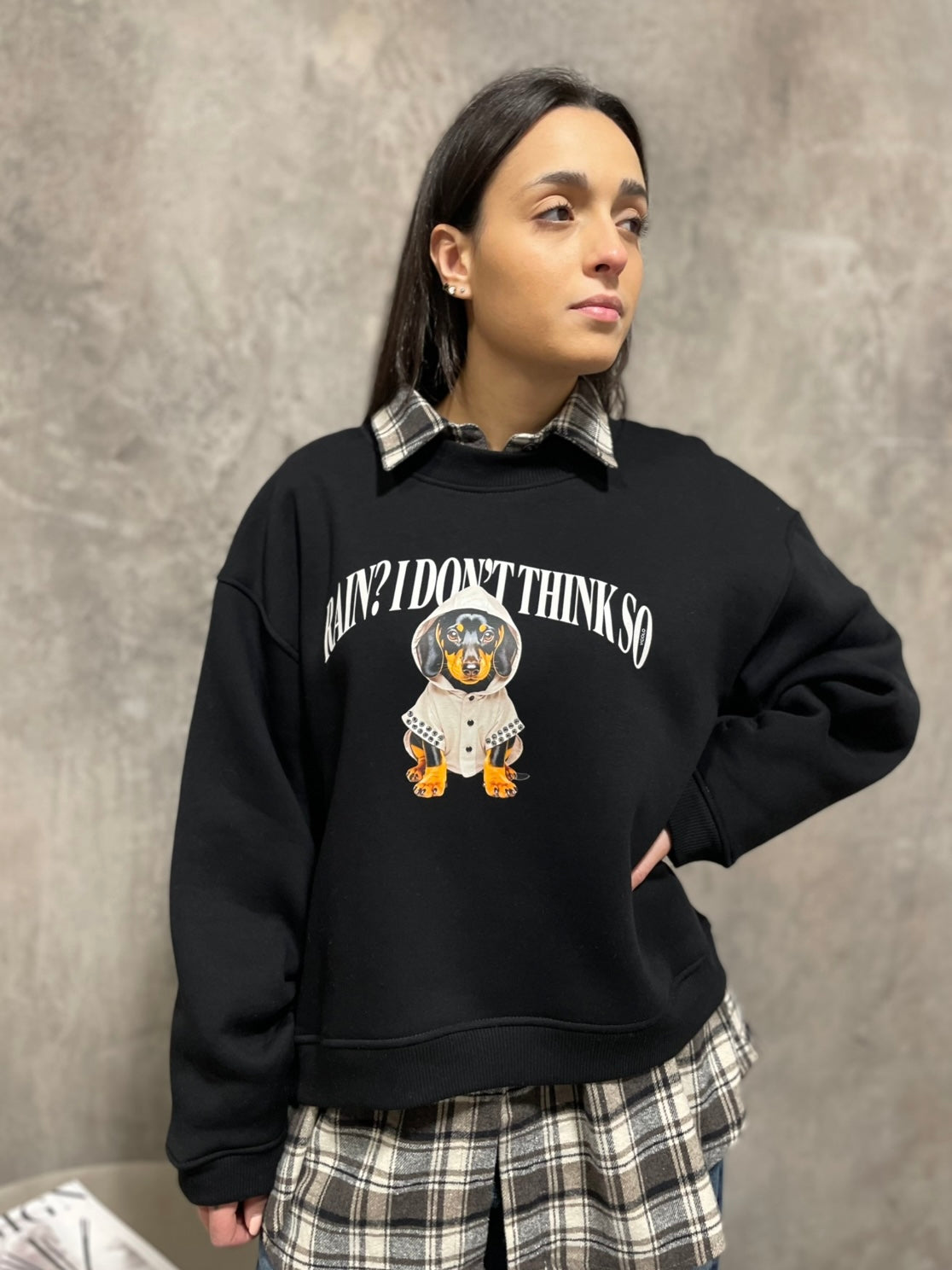 Felpa girocollo modello over con stampa frontale più applicazione strass.