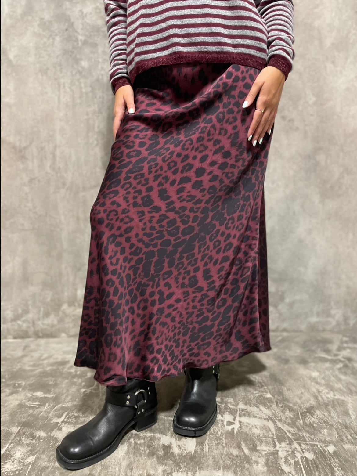 Gonna fantasia maculata in viscosa, elastico in vita.
