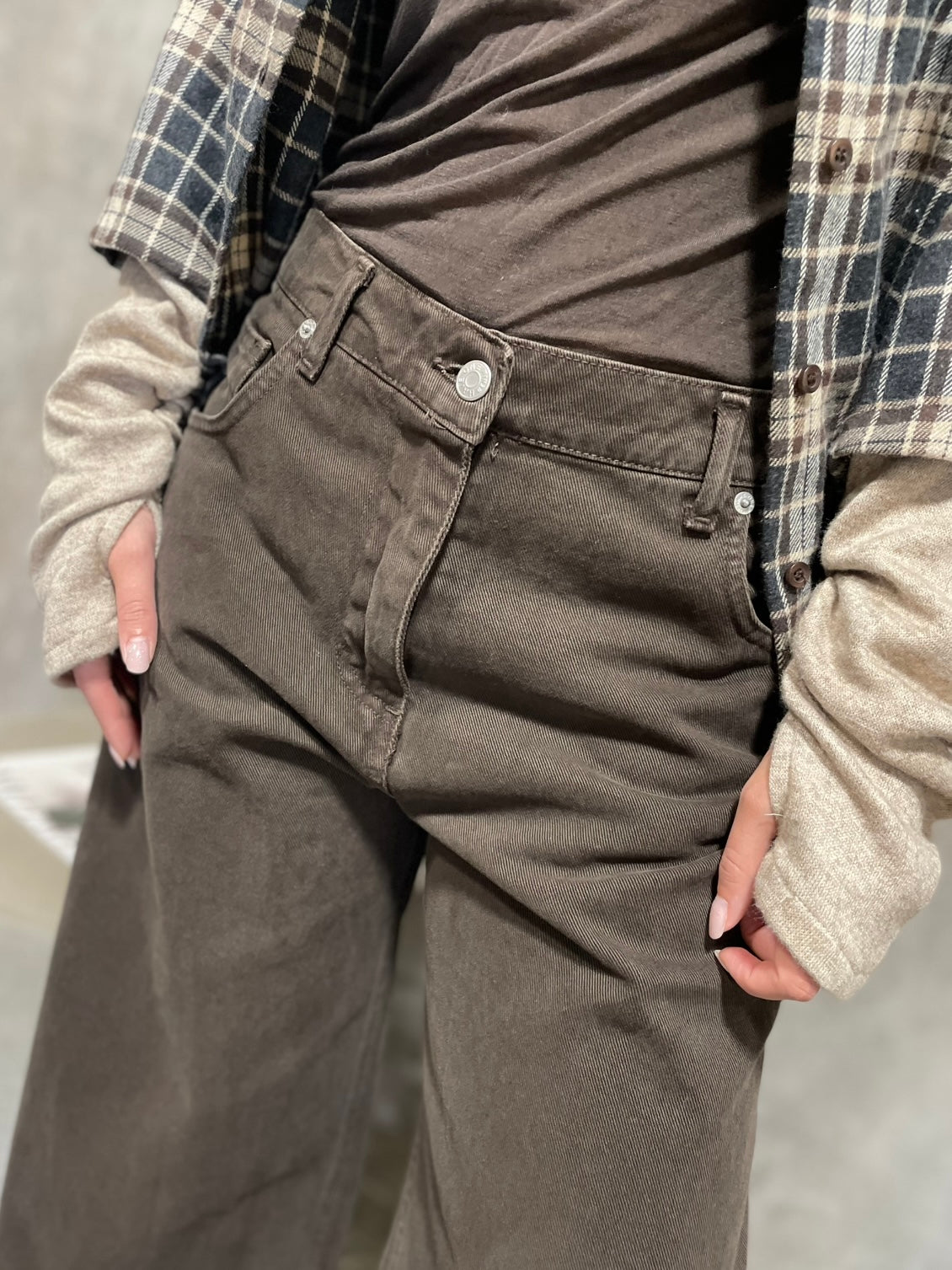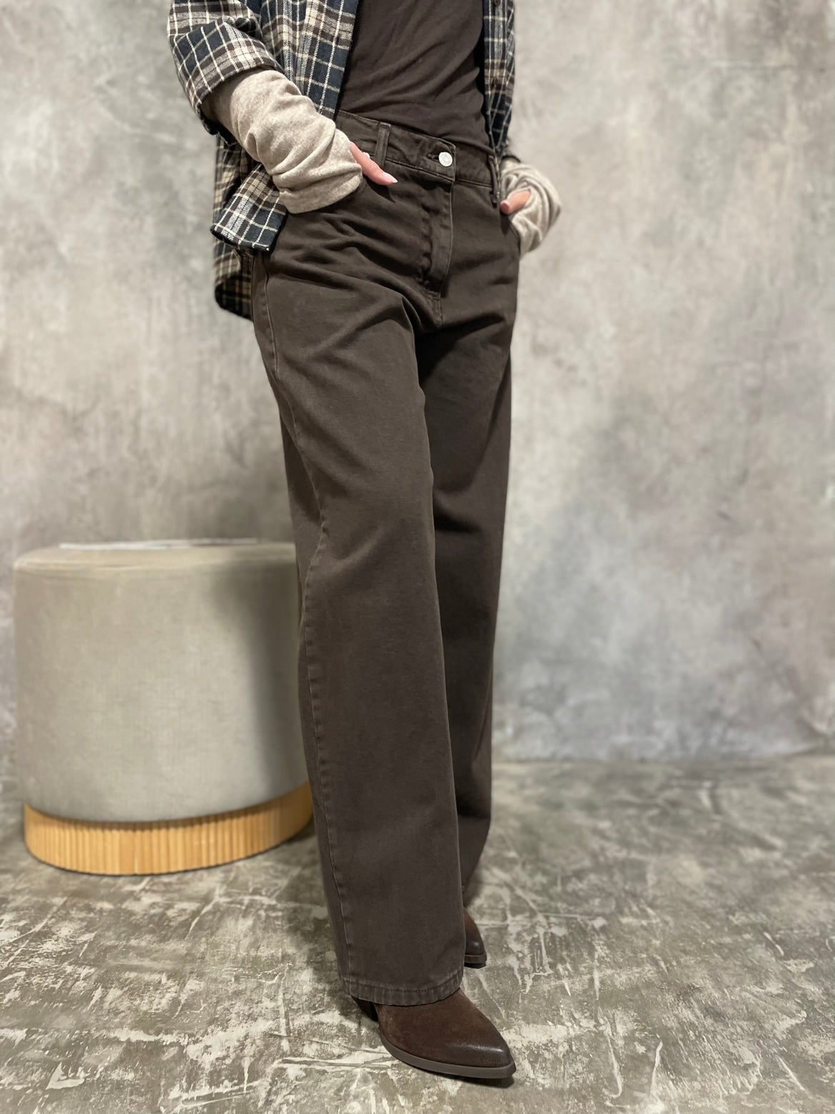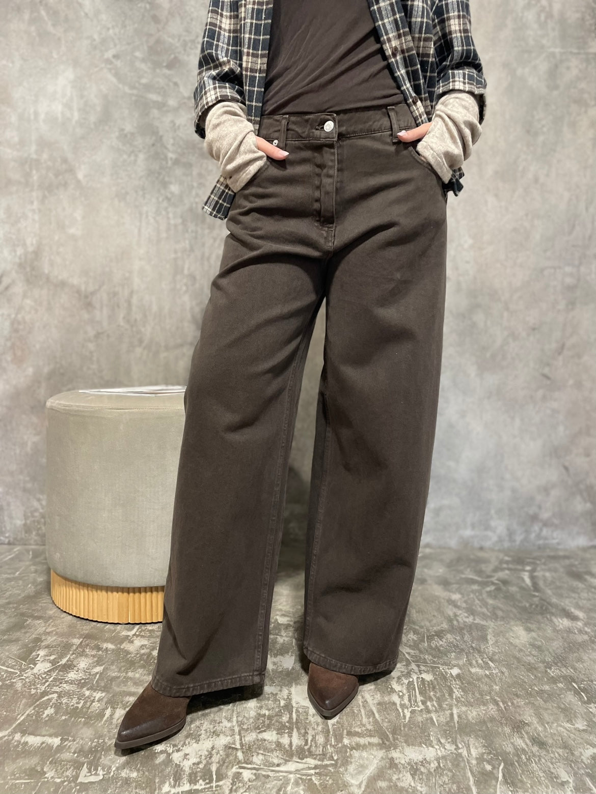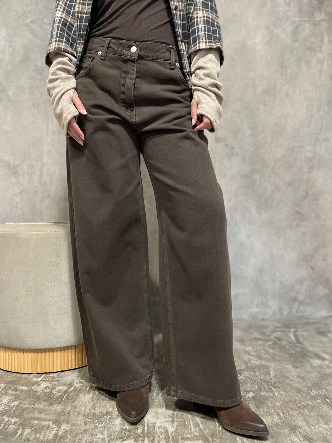 Jeans Bella modello wide leg, passanrti in vita, chiusura con zip e bottone.