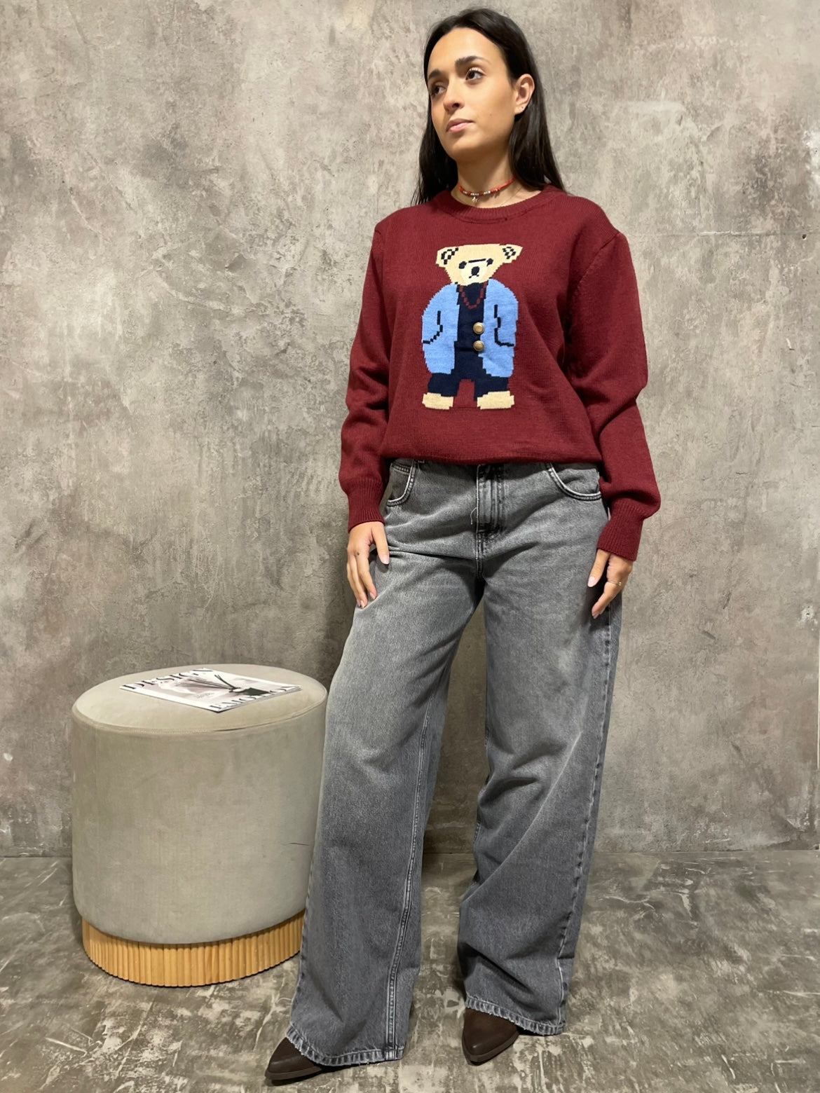 Jeans modello cinque tasche, passanti in vita, chiusura zip e bottone, salpa a contarsto logata sul retro.