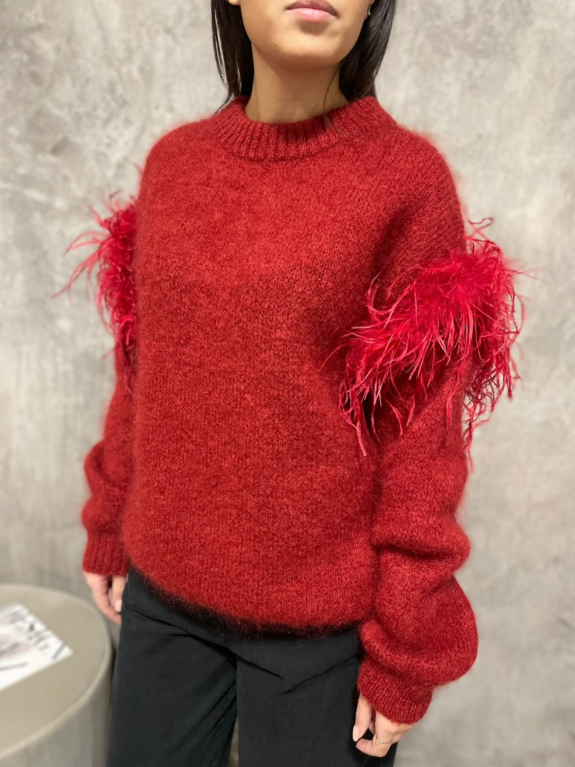 Maglia girocollo in Mohair con applicazione piume sulle maniche.