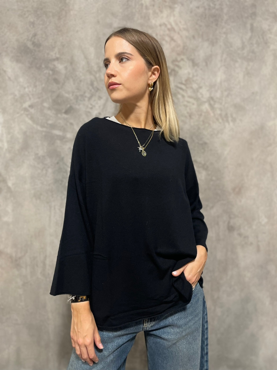 Maglia in misto viscosa con manica a 3/4, modello over.